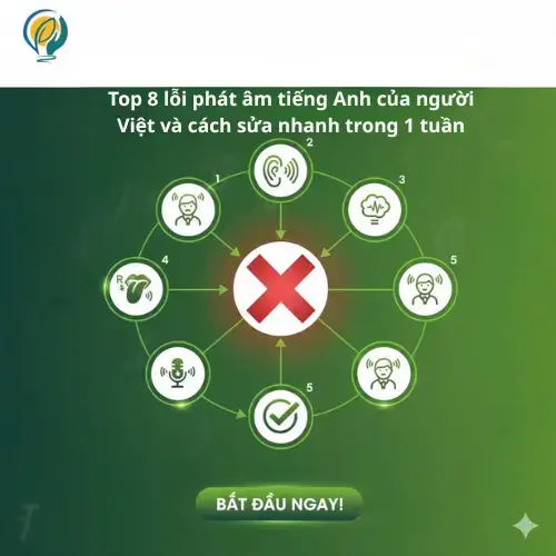 Khám phá 8 lỗi phát âm tiếng Anh người Việt hay mắc và hướng dẫn cách sửa trong 7 ngày. Phù hợp cho người mất gốc, người đi làm, sinh viên.
